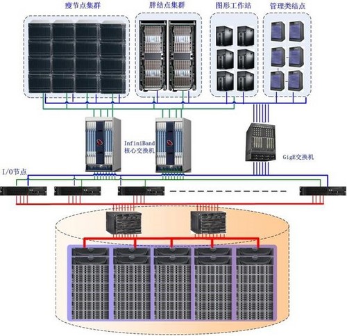 6神威Cluster是在匯集神威MPP機(jī)的技術(shù)優(yōu)點(diǎn)基礎(chǔ)上,專門為科學(xué)和工程計(jì)算領(lǐng)域設(shè)計(jì)開發(fā)的高性能計(jì)算平臺(tái)。在氣候氣象、海洋環(huán)境、數(shù)值風(fēng)洞、碰撞仿真、蛋白質(zhì)折疊、基因研究、新藥研發(fā)、分子動(dòng)力學(xué)模擬、量子化學(xué)計(jì)算、材料科學(xué)、芯片設(shè)計(jì)、動(dòng)漫設(shè)計(jì)、工業(yè)設(shè)計(jì)等方面用途廣泛。神威Cluster系統(tǒng)的通用結(jié)構(gòu)如下圖: